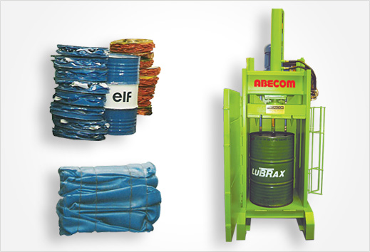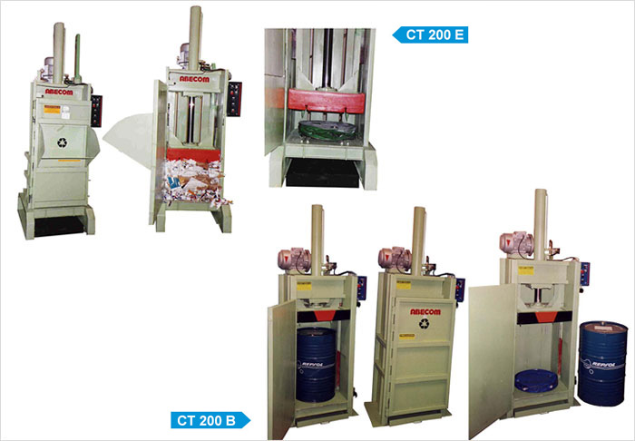 Modelos CTS y CTA 200-E: Para la compactación de Tambores metálicos y enfardado de materiales varios (papel, cartón, plásticos, etc.), con bandeja colectora de líquidos con cupla de vaciado